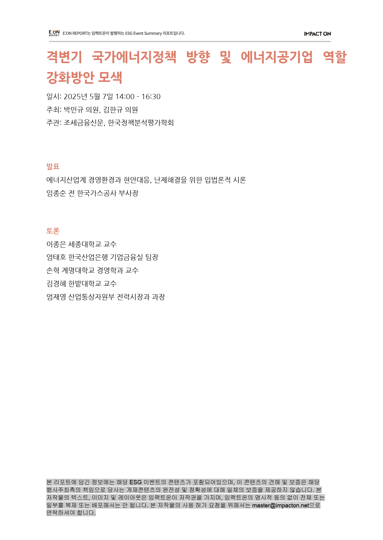격변기 국가에너지정책 방향 및 에너지공기업 역할 강화방안 모색 - 5월
